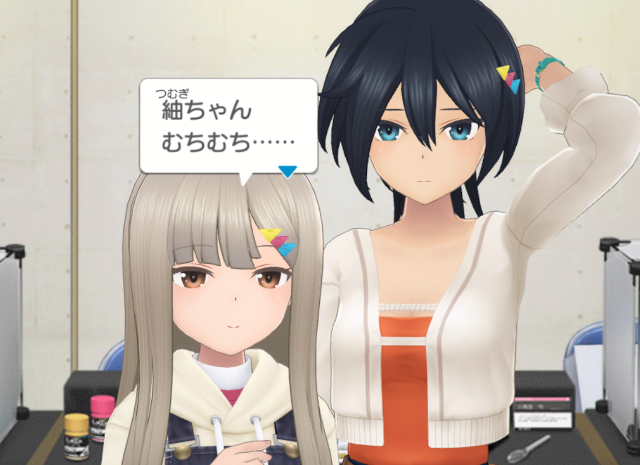 アリスギアにはもともとプロ級のモデラーで塗料の議論も日ごろからよくしている金潟 すぐみ(かながた すぐみ)と新居目 安里(あらいめ やすり)がいるので、塗料会社の広報が世界に溶け込むのはカンタンなのであった。なんで美少女3Dアクションシューティングゲームで日ごろから塗料の議論がされてるんだよ?
