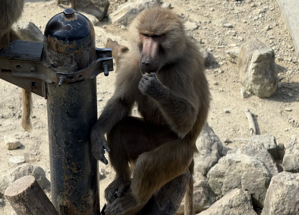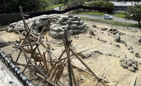 岩でできたサル山があるほか、木登りできる場所もあり、マントヒヒたちが退屈しないように作られている。