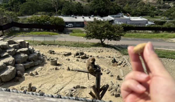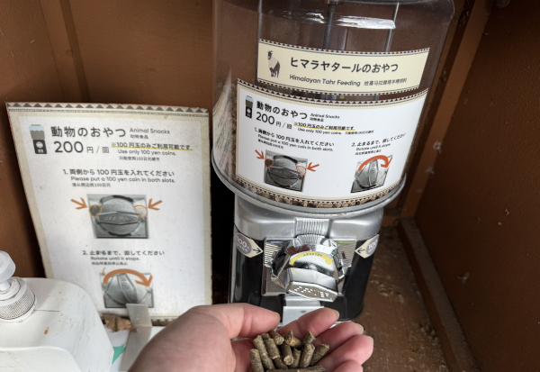 そして、マントヒヒたちはかなり賢いので、おやつマシーンに200円を入れてガチャッと回したら……