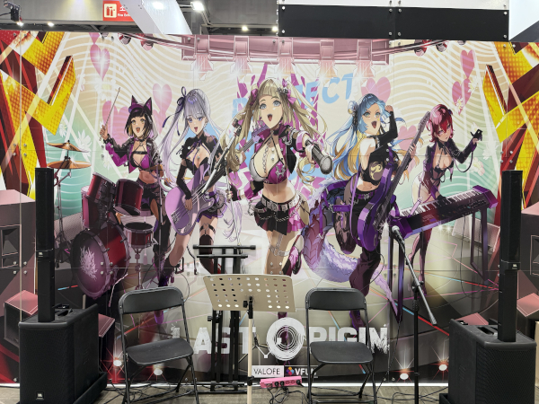 よく見ると、これはミニライブ! なんとブース内でラストオリジンのボーカルつき楽曲が生演奏&生歌唱で披露されている! 韓国のイベント、そんなことできるんだ!?