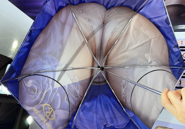 どうやら、彼女のスカートのデザインを再現した傘のようだ。たしかに、スカートって形状的には傘にちょっと似ていなくもない。これはけっこうおしゃれなグッズ……