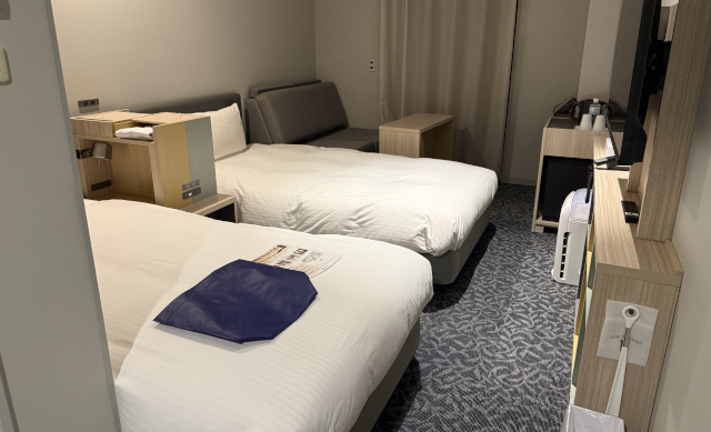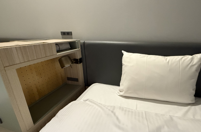 キレイなのはもちろん、ベッドサイドに4つものコンセントとスマートフォンを置きやすい棚があったのがとてもうれしい。ぼくはベッドサイドにコンセント絶対あってほしい星人なので、これはとてもポイントが高い。