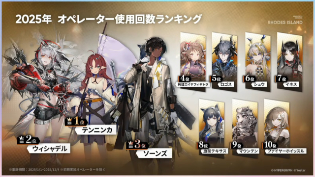 これは、2026/01/11(日)『アークナイツ 6th Anniversary Fes. DAY2』内で発表された、全ユーザーの統計データ。