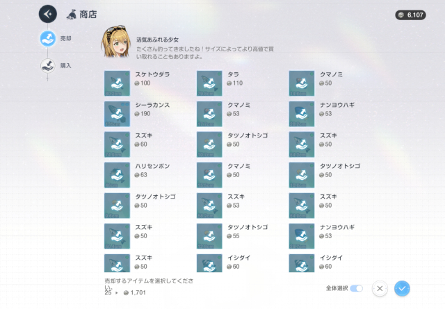 釣った魚は持ち続けておく意味はないので、どんどん売って『幸運の銀貨』を貯めて、