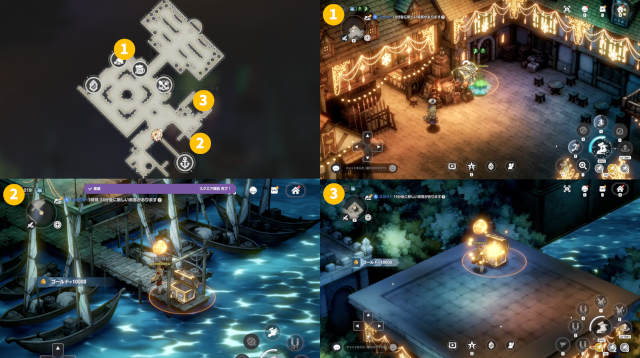 ファンタジア・スクエア内に隠された3つの宝箱を見つけると業績『スクエア探索』が達成され、バイクと自転車が買えるようになる!