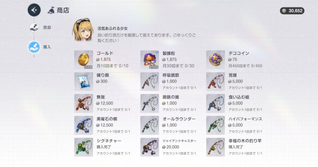さらに、幸運の銀貨で『製錬紛』『デココイン』を買うこともできるので、釣りの成果はファンタジア・スクエア以外でも活きる!