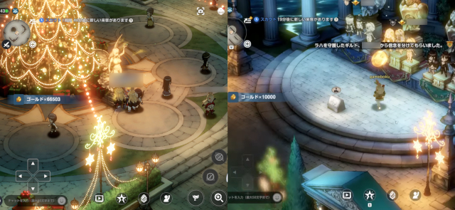 広場にある『アイレクシオン女神像』に触れると、1日1回ランダムでゴールドやアイテムがもらえる。