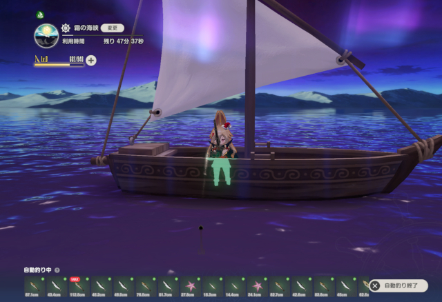最長6時間までの『自動釣り』モードがあり、釣ったことがある魚の中からランダムで釣り続けてくれるので、寝る前などにセットしておけば、なにもしなくても釣果を得ることが可能なのだ!
