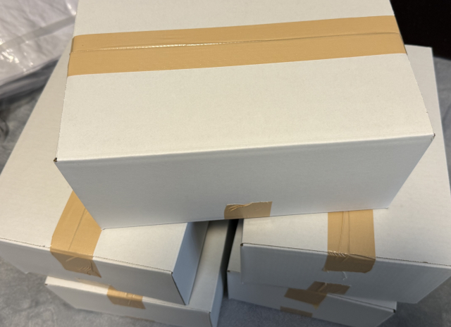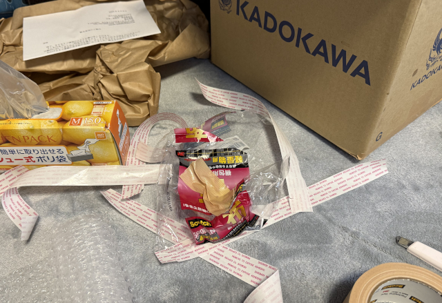もっと早い段階で梱包してもよいが、匿名配送は相手とやりとりしたり相手に対応してもらったりしないとけっきょく送れないので、今回は段階がある程度進んでから梱包することにした。