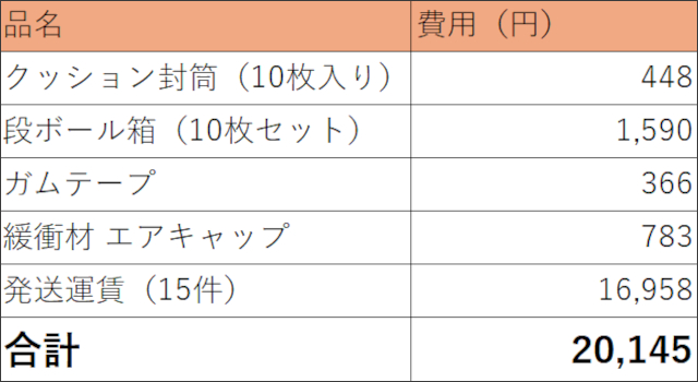 むしろ15個送って資材費も込みで2万に収まってるの安くない?