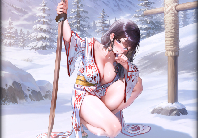 こちらは右肩始動。右肩→右胸の順にタッチすることで、着物の奥をまさぐることができる。