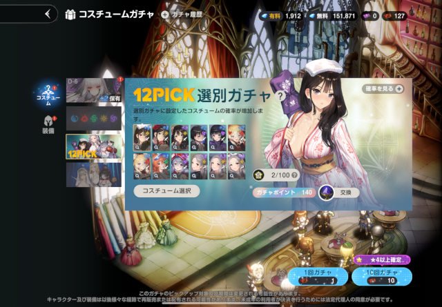 『12PICK選別ガチャ』の対象にも指定できるので、未入手の場合はこれを使って狙おう。
