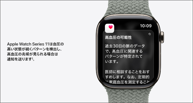 へ~! いまのApple Watchって、高血圧パターンの検出もできるようになってるのか!