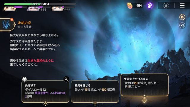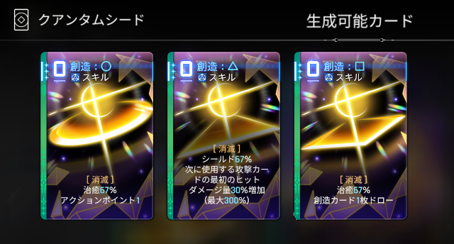 〇は治癒&AP、△はシールド&ダメージ量UP、□は治癒&創造カードのドロー。