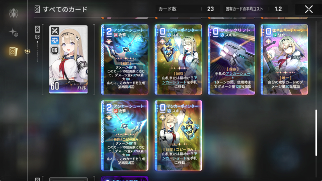 ティペラのカードコピー候補が微妙な場合は、ハルかカリーペのよさそうなカードをコピーしていく。今回はハルのアンカーシュート。
