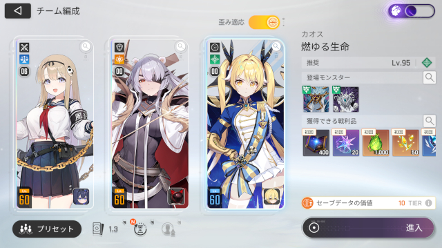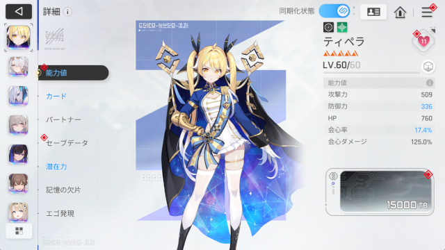 ティペラのダメージ量UPバフをハルで活かすことを考えて、ハル・カリーペ・ティペラで組んでみた。これでティペラのいいセーブデータを作るぞ!