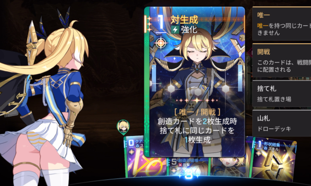 創造カードが命のキャラなので、それを直接生成するカードが最重要なのはほぼ必然。これをいいヒラメキをさせたうえでカードコピーしていきたい。