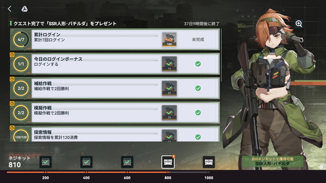 バチルダは、レアリティは最高ランクのSSRだが、期間限定でゲーム内のクエスト完了でカンタンに仲間にできる。初心者でも4~5日プレイすればもらえる。