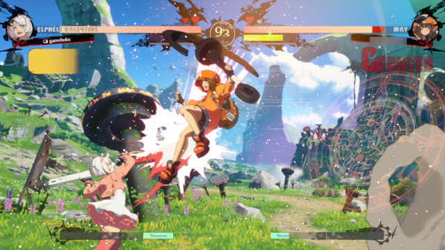 エルフェルトなら、遠距離からMissシャルロットを何発か撃って牽制し、しびれを切らした相手が空中ダッシュで飛び込んできたところを前P(パンチ)で触り、カウンターヒットからボンボン・ショコラにつなげていくのが定番の流れ。