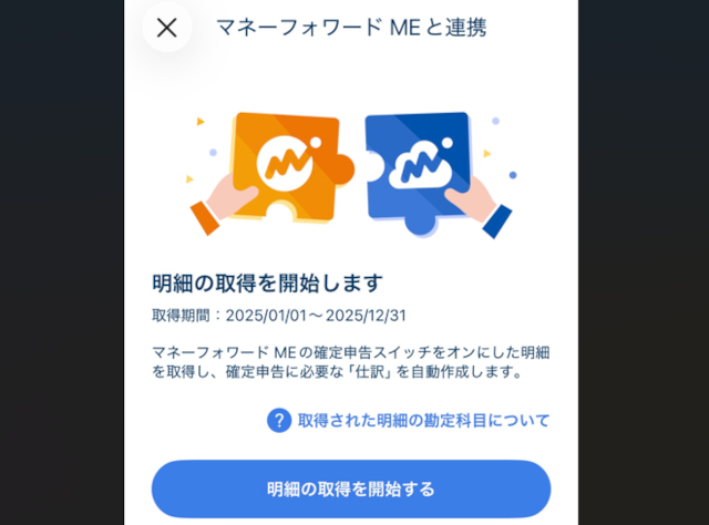 なので、「明細の取得」ボタンを押すだけで、基本的な仕訳帳はすぐ完成する。