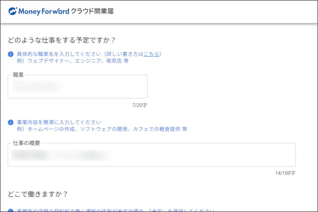 『マネーフォワード クラウド開業届』だと、こんな感じ。