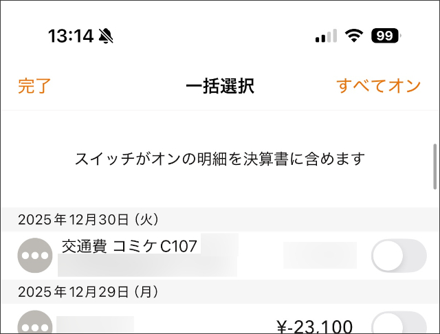 ぼくは前述の通り、マネーフォワードでふだんから家計簿をつけていて、クレジットカード・銀行口座との連携設定もしてあるので、すべてのお金の出入りがあらかじめ記録できている。その中から確定申告対象になる項目も設定できている。