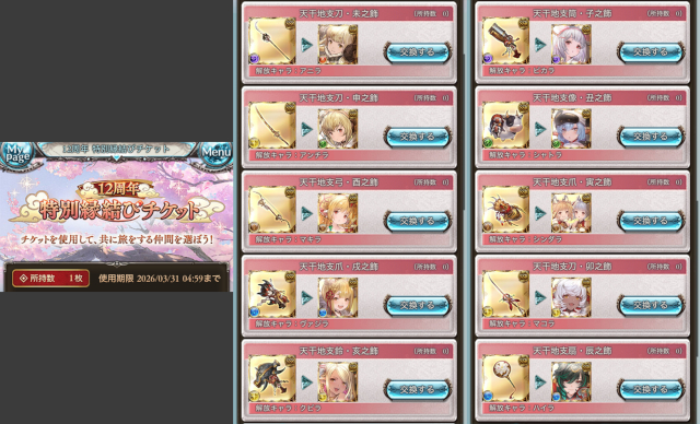 なんと! 十二神将から好きなひとりを選んでもらえる『特別縁結びチケット』が、全ユーザーに2026/03/31(火)まで限定で配られている!