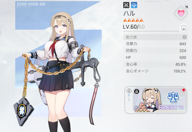 ハルも属性『正義』で、エゴ発現+2の特性でアンカーシュートのコストを踏み倒して高威力の攻撃を連発するアタッカーなのだ。