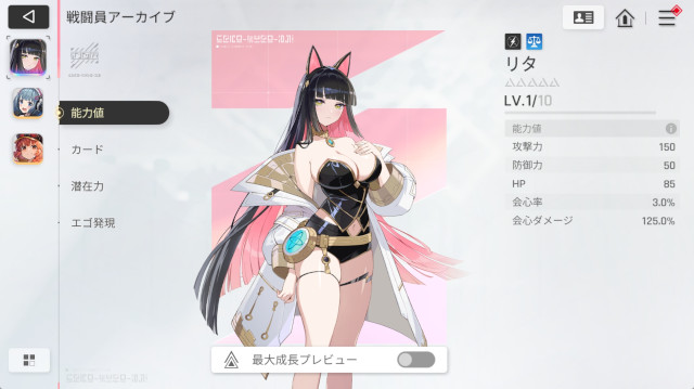たとえば、最近『リタ』という新戦闘員が実装された。