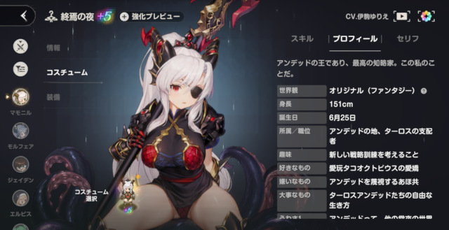 マモニル様は過去のサマーイベントにもゲストとして度々登場していたものの、コスは一向に実装されなかった…がついに本編に登場してコスも実装!今年こそ水着マモニル様コスも手に入るに違いないと期待しております!あと意外に大食いキャラらしいのでユーティとの大食い対決にも期待が高まります!俺はどっちを応援すればいいんだ!(早口)