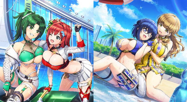 なんと今回は全員水着! 「なんと今回は」とそれっぽく言ってみたが、ドルフィンウェーブはマリンスポーツが題材なこともあってそもそもデフォルト衣装が水着なのでなにも珍しくないぞ!