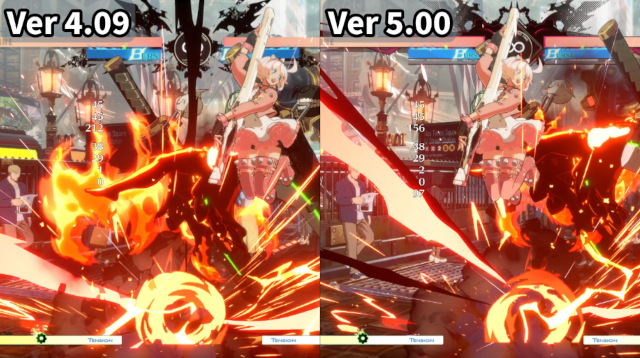 「判定の調整」は全キャラ共通なのだが、「吹き飛びの調整」はエルフェルト固有の変更点。