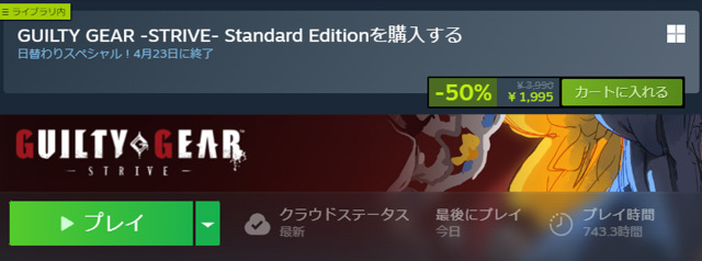 『ギルティギア ストライヴ』は2026/04/09(木)現在だとPS5/PS4やPC(Steam)で1,995円で買えるのだが、それで743時間も遊んでしまっている自分が恐ろしい。
