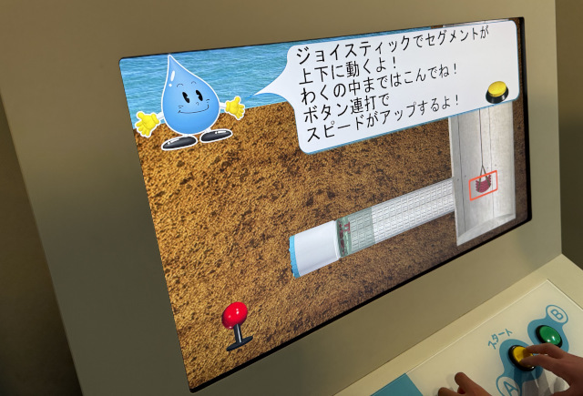 水道管工事を体験できるゲームだ! ジョイスティックとA・Bボタンがあり、かなり本格的! アーケードゲームみたい!