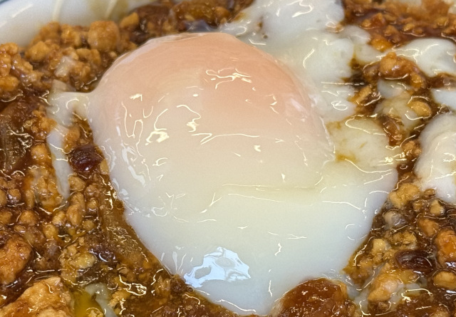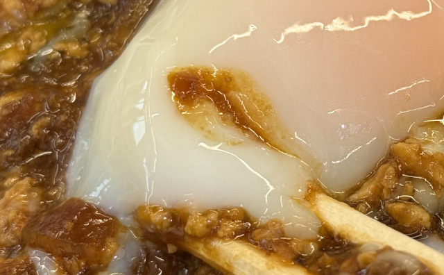 ほかのメニューと同様、+100円で温玉をトッピングできる。