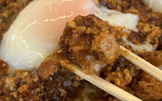 一見すると、濃いタレがかかっただけのカツ丼に見えるが、