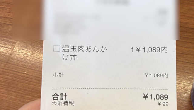 安い! 温玉をトッピングしても税込1,089円!