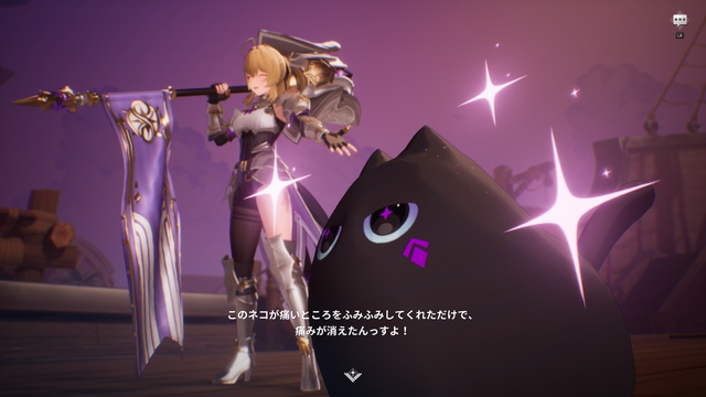 各種のイベントや会話でも大活躍。話しかけると「ニャァア! ニャ!」などと元気よく返事してくれる。意味がなさすぎてかわいい。効率化された現代社会にこそ、こういう意味のなさが必要なのだ。