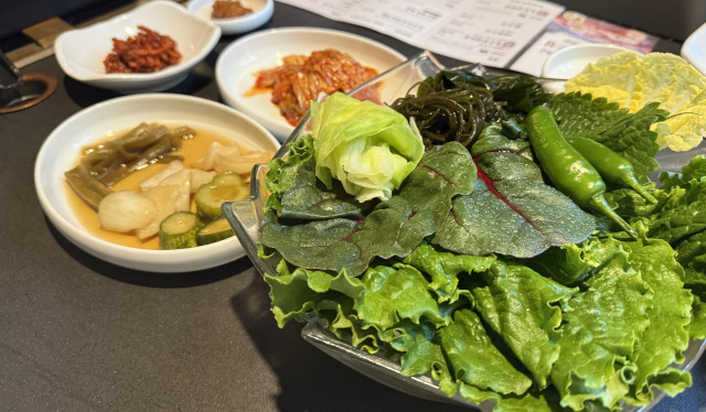 幸い、韓国の焼肉店はキムチやサンチュといった野菜も豊富なので、今回はそれ中心でいこう。