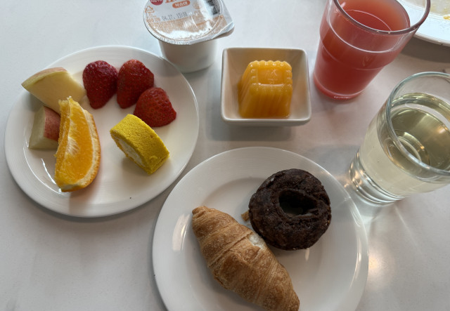 さっき朝食ビュッフェをしっかりめに食べたし、そもそもきのうまでブラウンダスト2公式の策略によってご飯をいっぱい食べさせられてしまったので、きょうはもう何も食べないでおこう。機内食も断ろう。