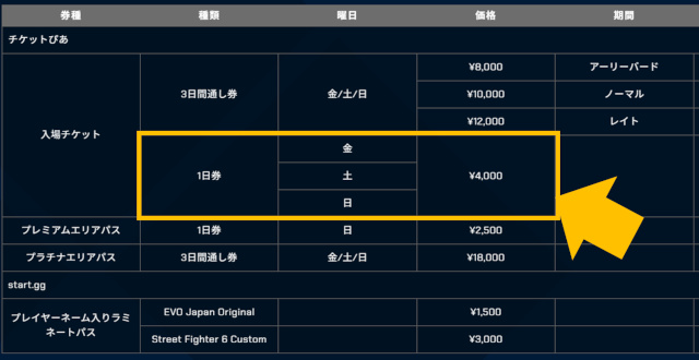 出典:EVO JAPAN 2026 観戦者向けチケット購入ページ