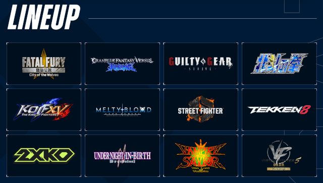 いちばん規模が大きいのは『ストリートファイター6』だが、ほかにも注目タイトルがたくさん。ぼく自身は『ギルティギアストライヴ』と『グランブルーファンタジーヴァーサスライジング』に出場する。